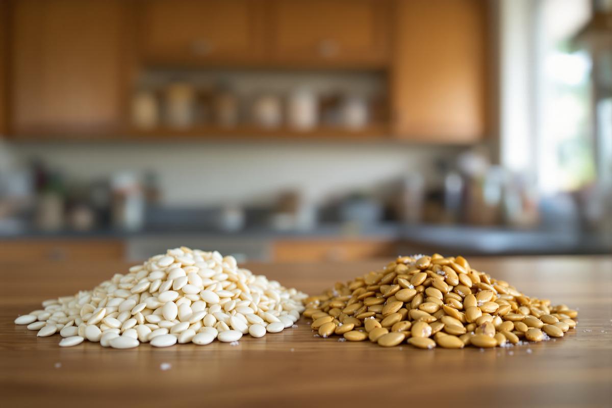 Vous êtes tenté par une collation croquante mais vous hésitez entre une graine blanche et une graine de courge salée ? Ces deux graines ont beau venir de la même plante, leurs saveurs, bienfaits et usages diffèrent nettement.